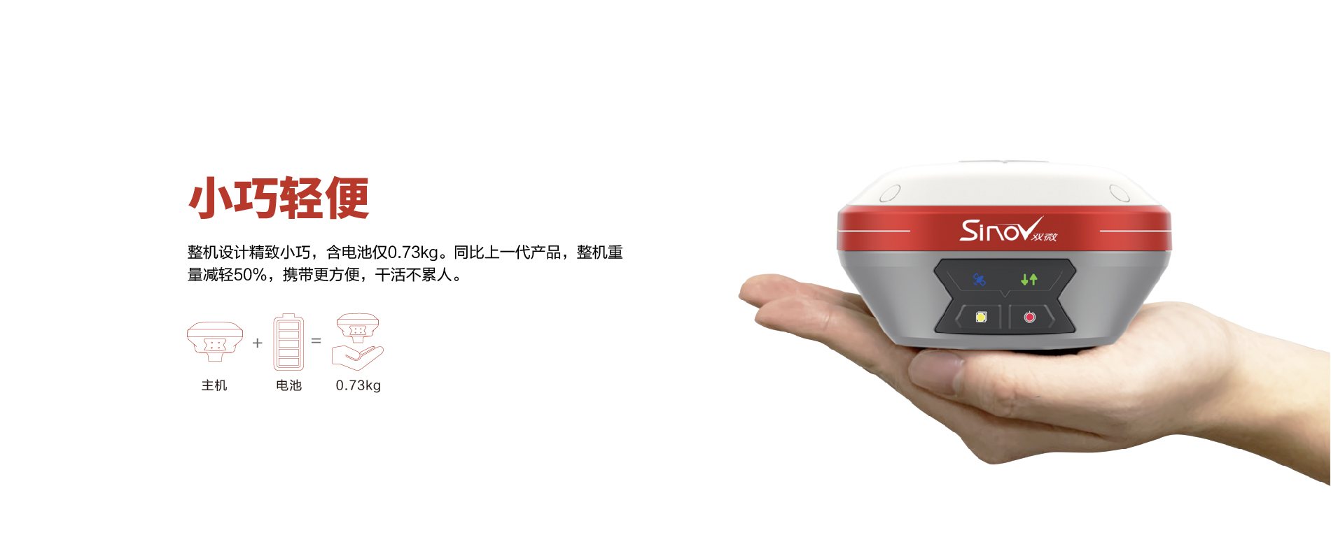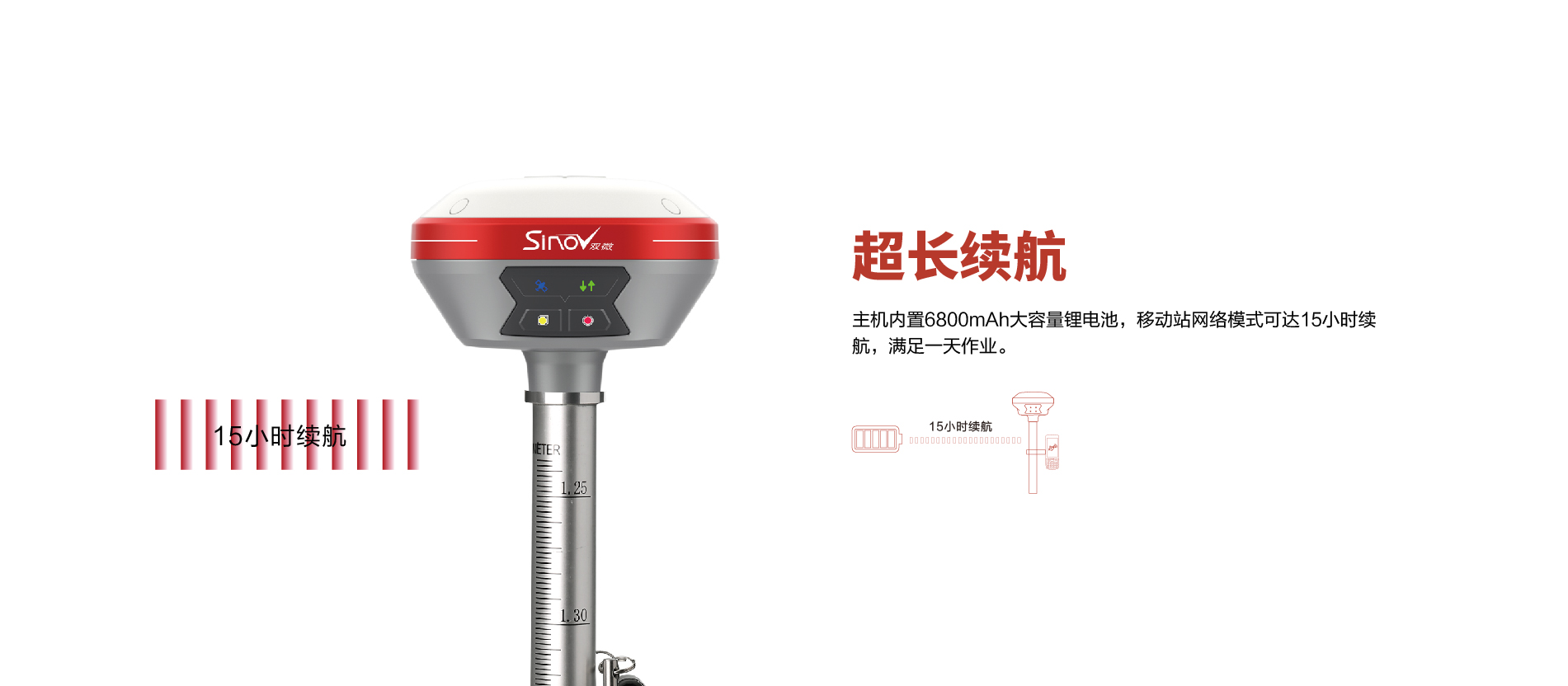 內(nèi)置6800mAh鋰電池,支持移動站15小時續(xù)航 |